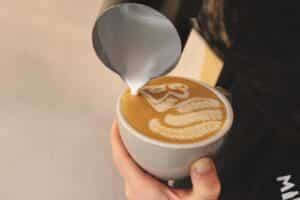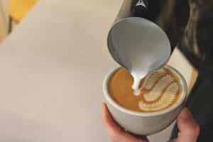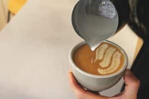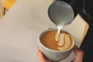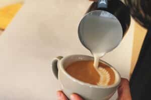 Using a 10-ounce cup, start by mixing the milk with the coffee until the cup is around a third full.
